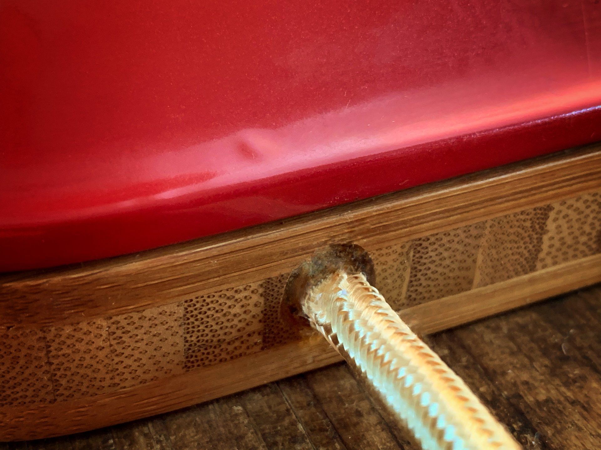 Geschaltet wird der Italiener mit sanftem Druck auf einen Edelstahlschalter, der rechts ins Gehäuse integriert ist (siehe Fotogalerie). Passend zu den glänzenden Fassungen und den großen Hutmuttern aus massivem Messing haben wir ein mit Metallgewebe umwickeltes, goldfarbenes Stromkabel verwendet. Zusammen mit dem satten Alfa-Rosso und dem warmen Ton des Bambusholzes ergibt sich auf diese Weise ein stimmungsvolles Gesamtbild.
