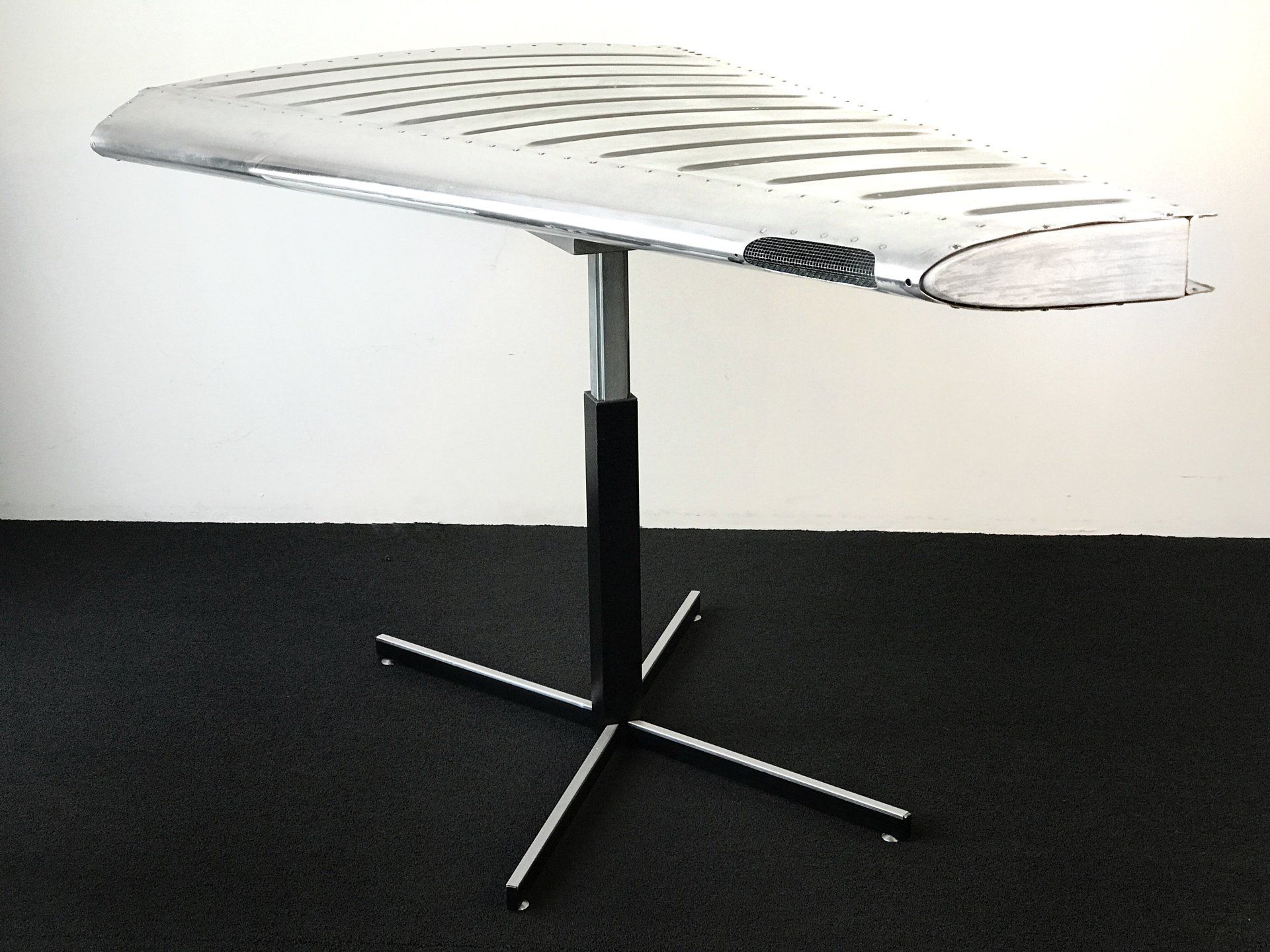 Der Tisch ist höhenverstellbar. Und leider schon verkauft. Auf Bestellung produzieren wir für Sie jedoch gern einen solchen oder ähnlichen Tisch. Und der "Wingman 1" (weiter oben) steht ebenfalls startbereit am Gate. Sie müssen nur einchecken.